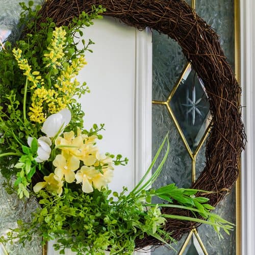 Freshen up your small front door entryway for Spring with these simple front porch decor ideas. They will increase your home’s curb appeal and bring joy every time you walk in the door! I confess. I had my Christmas wreath on my front door until just a few days ago. I called it “Winter Decor”…