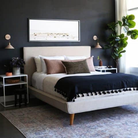 As I look through inspiration pictures when planning a room makeover, I like to dig deep and analyze the reasons why I like a certain overall look and feeling. In order for a black wall in a bedroom to feel like home to me, I think it also needs to be paired with the following features: