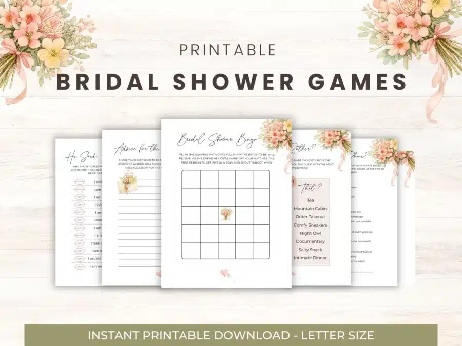 - Simple, stress-free printing: Just choose your favorite bridal shower games printable, download, and print at home on regular-sized paper—quick and easy.