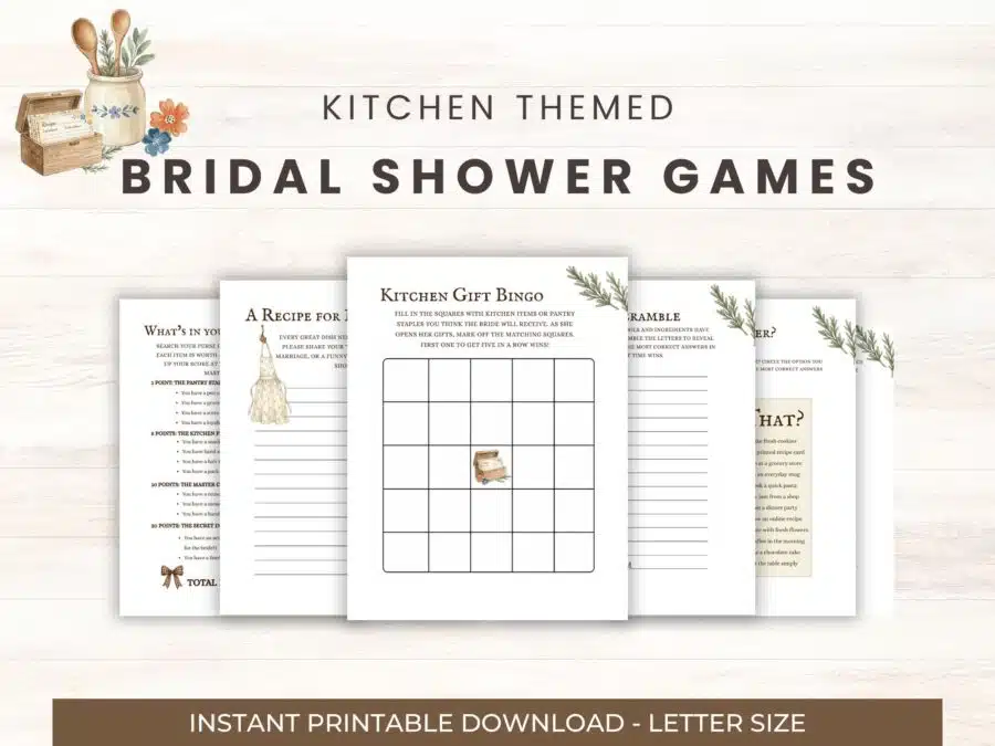 Inspired by old recipe cards, handwritten notes, and the feeling of gathering in a cozy kitchen, this bridal shower games printable set is filled with thoughtful, home-centered activities your guests will have fun playing together
